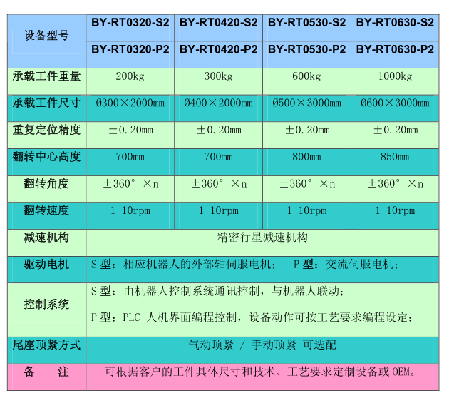 BY-RT XXXX-S(P)2系列 焊接机器人外部轴-- 头尾架式自动翻转变位机